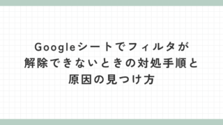 Googleシートを使っていると、「フィルタを外したはずなのに元に戻らない…」と戸惑ってしまうこと、ありますよね。特に作業に慣れていないうちは、原因が分からずに同じ操作を何度も繰り返してしまったり、「壊れてしまったのでは?」と不安になってし...