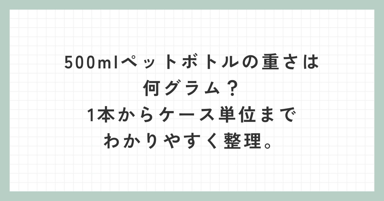 500mlペットボトルの重さは何グラム?1本からケース単位までわかりやすく整理。
