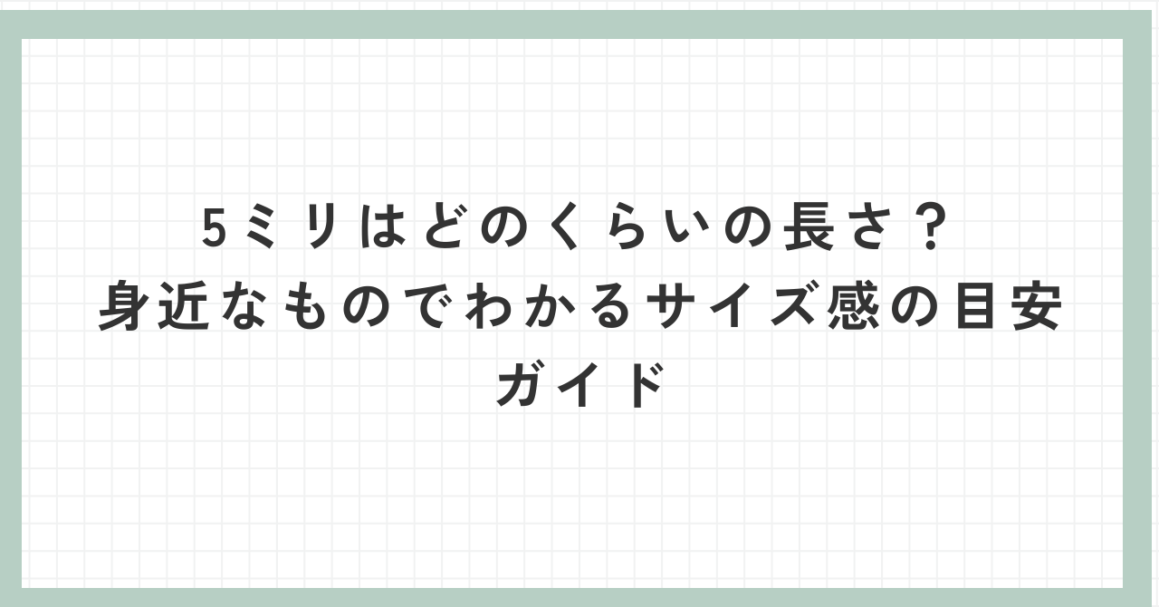 この記事では、できるだけむずかしい数字の話を使わずに、身近な物をヒントにしながら5ミリの長さをやさしくイメージできるようにまとめました。