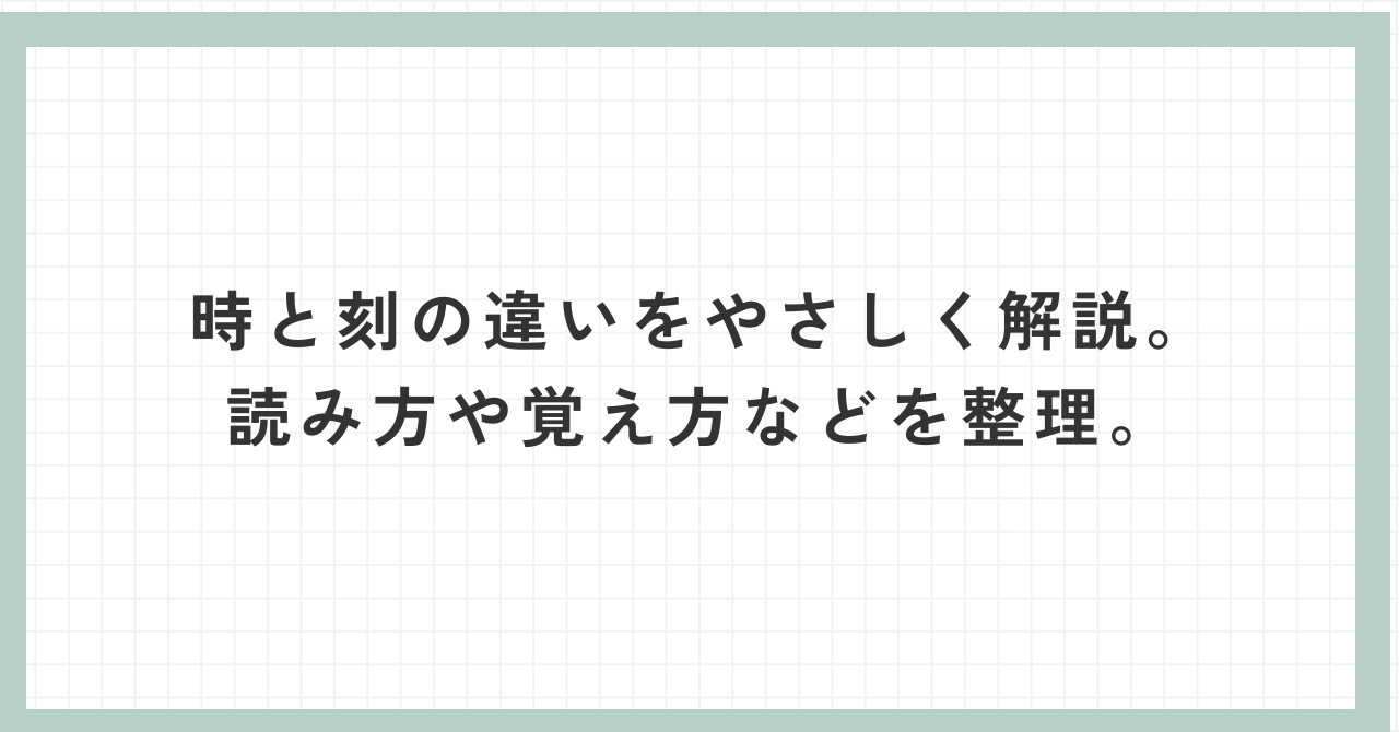 ここでは、「時」と「刻」で迷いやすいポイントを、やさしく整理していきます。
