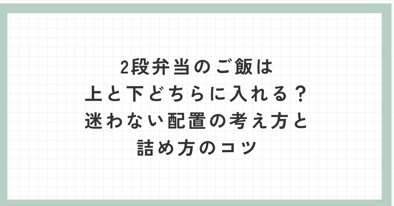 2段弁当を使い始めたとき、多くの人が一度は迷うのが「ご飯は上と下どちらに入れるの?」という疑問ではないでしょうか。
