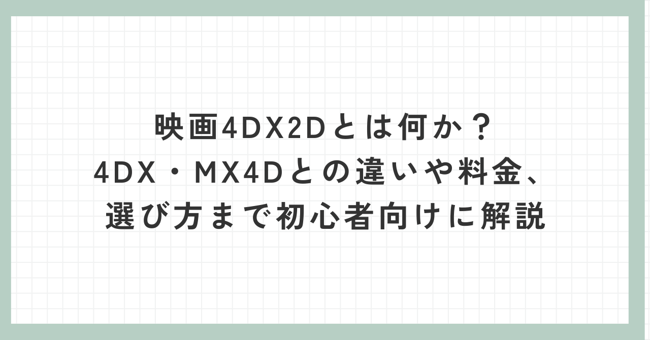 そこで今回は、4DX2Dを実際に体験する前に知っておきたい基礎知識をまとめました。