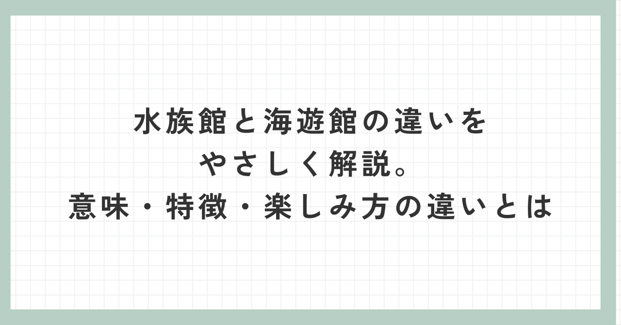 この違いを押さえておくと、「水族館と海遊館は何が違うの?」という疑問がすっきり解消されます。
