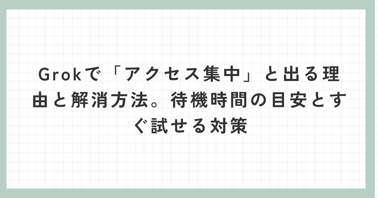 本記事では、Grokでアクセス集中が表示される原因や、待機時間の目安、そして今すぐ試せる具体的な解決策を分かりやすく解説します。