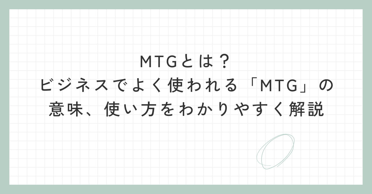 MTGは、「ミーティング」を短く表現した略語で、ビジネスのさまざまな場面で使われています。
