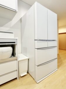 キッチンとダイニングがつながっている間取りでは、冷蔵庫の出っ張りが視界に入りやすく、部屋全体が少し狭く感じられることもあります。
