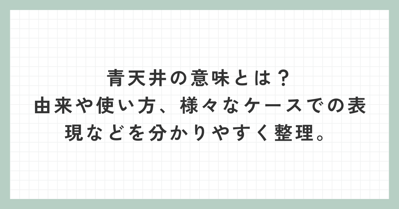 ふだんの会話やネットの記事、色々な話題の中で見かけたり聞くことはあっても、ちゃんと意味を聞かれると自信がない、そんな言葉のひとつが、この青天井です。